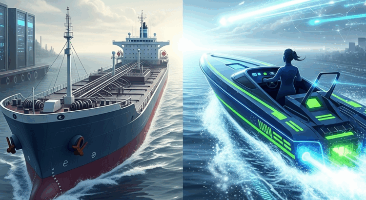 Stell Dir den Mittelstand wie einen riesigen, zuverlässigen Tanker vor. Er ist stark und kann enorme Lasten transportieren, aber er braucht Meilen, um den Kurs zu ändern. Du hingegen bist das Schnellboot: wendig, schnell und in der Lage, sofort auf neue Gegebenheiten zu reagieren. 🚀